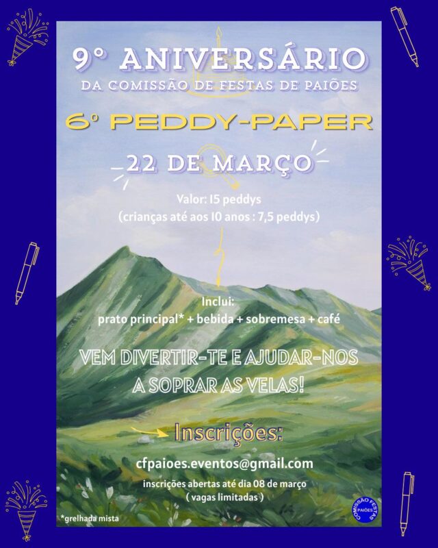 Para festejar o seu 9º aniversário a Comissão de Festas de Paiões organiza mais um peddy-paper.
