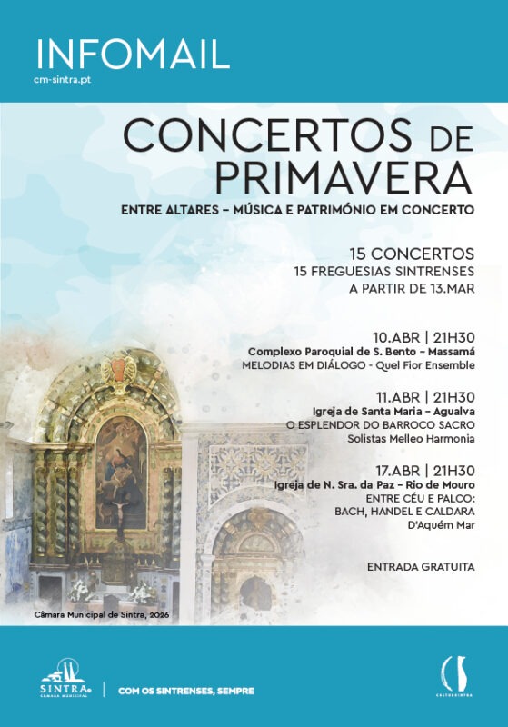 A Câmara Municipal de Sintra e a Fundação CulturSintra apresentam, de 13 de março a 30 de maio, um ciclo de concertos que leva a música a todas as freguesias Sintrenses, sempre com entrada gratuita.
