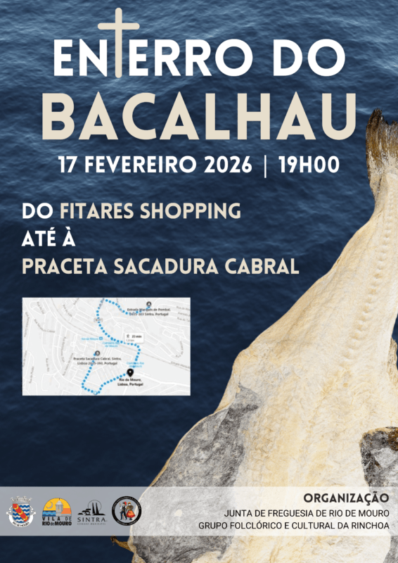 O Enterro do Bacalhau irá decorrer no dia 17 de Fevereiro às 19h00 com início do Cortejo em frente ao Fitares Shopping na Rinchoa e irá terminar na Praceta Sacadura Cabral em Rio de Mouro