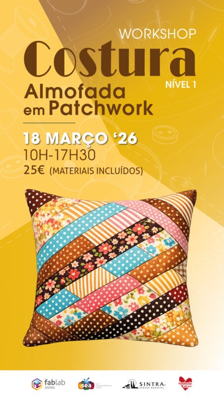 No dia 18 de março, entre das 10h e as 17h, irá decorrer nas instalações da FabLab (Largo Padre Américo, 10 SC, 2745-712 Massamá), um WORKSHOP DE COSTURA CRIATIVA – Almofada em Tiras Coloridas (Nível 1).